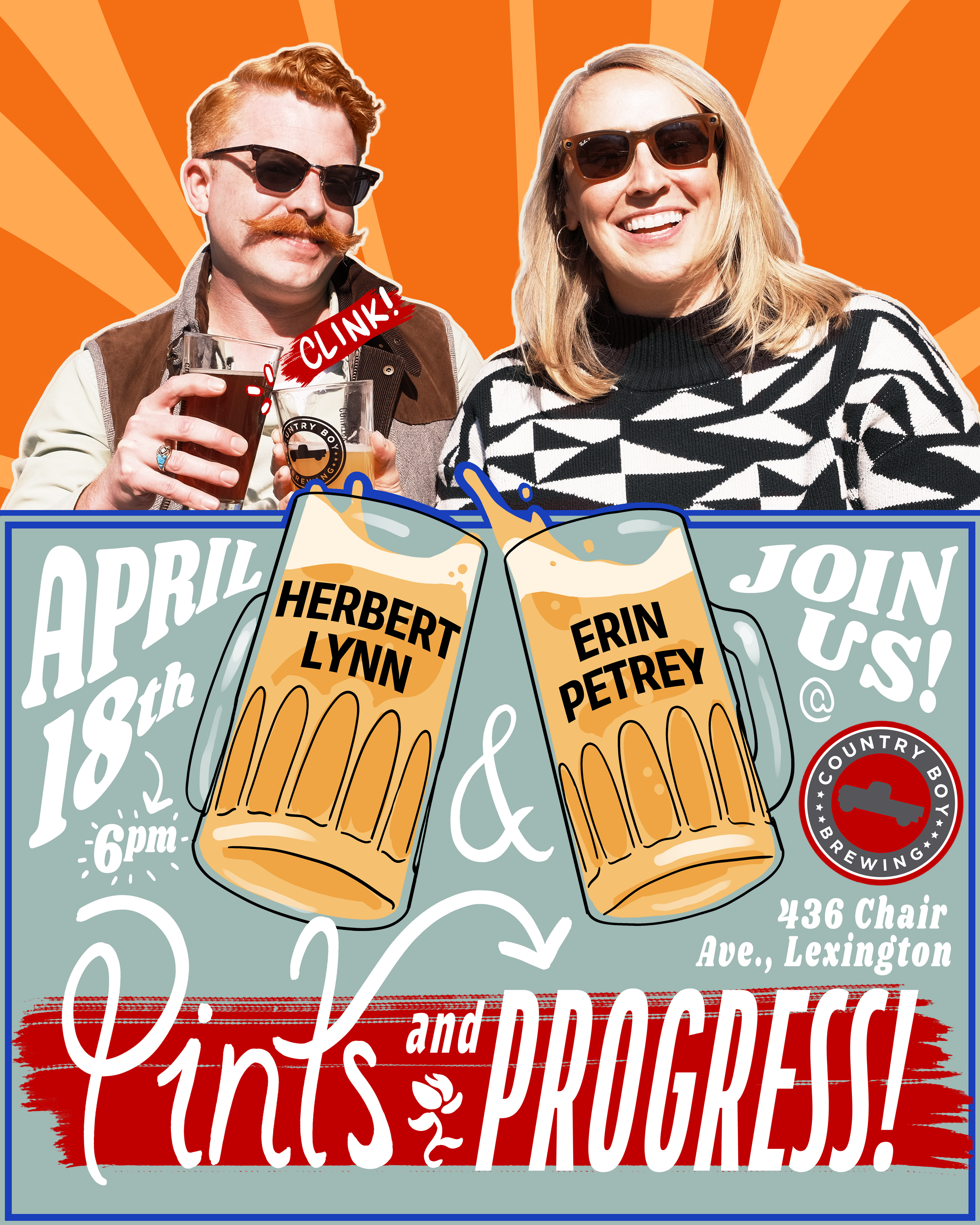 Saturday, April 18th at 6pm, come out to Country Boy Brewing for a night of bingo and beers with Erin and Herbert. Proceeds will go to both campaigns and help ensure Erin can bring affordability, access, and opportunity for ALL in the 6th district; and Herbert can build a more livable Lexington!